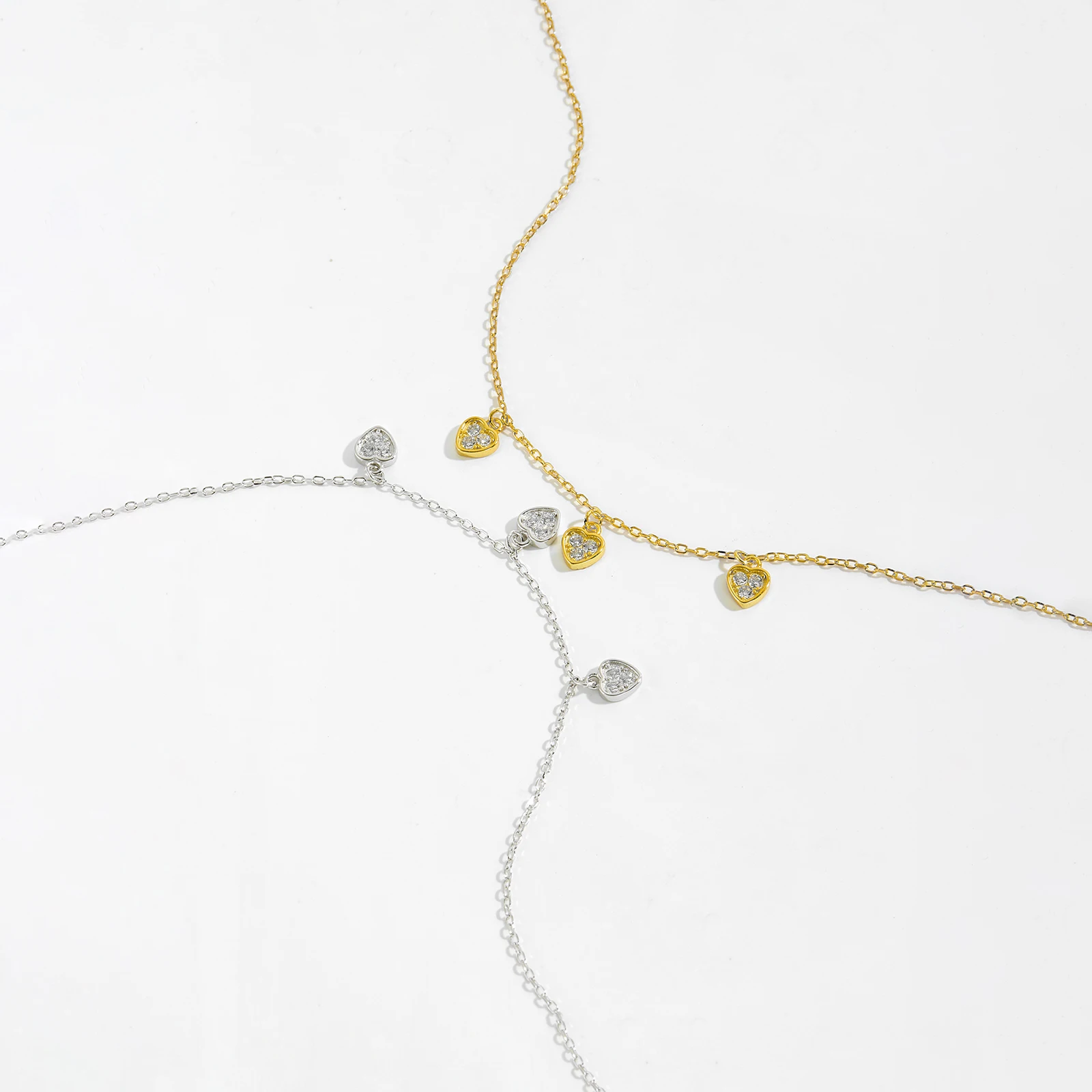 Add a romantic and elegant touch to your jewellery collection with this 925 sterling silver three heart pendant cubic zirconia bracelet. Designed with three delicate heart charms accented by sparkling cubic zirconia stones, this bracelet combines timeless symbolism with refined everyday style.